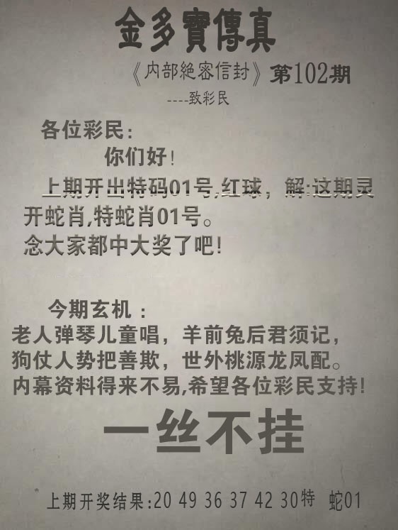 2025102期:金多宝传真