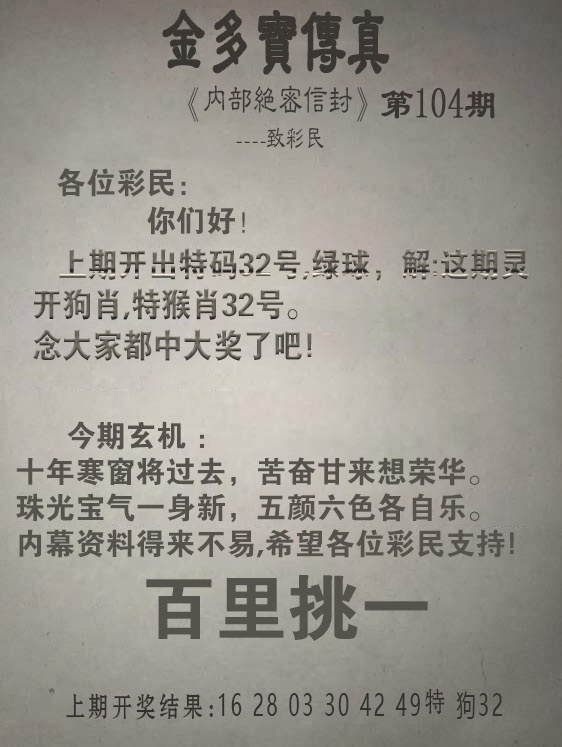 2025104期:金多宝传真