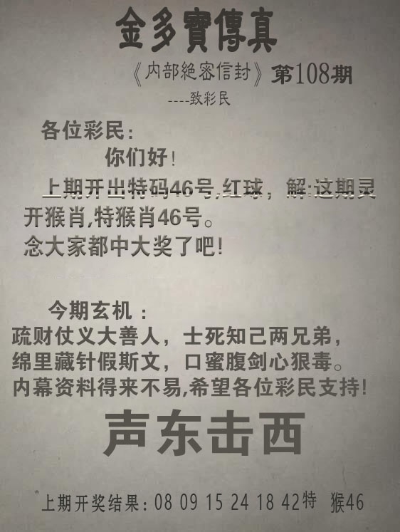 2025108期:金多宝传真